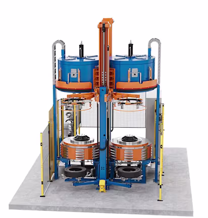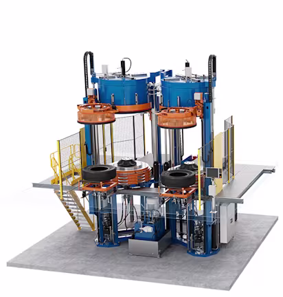 Common control press available for passenger car tyre manufacturing.